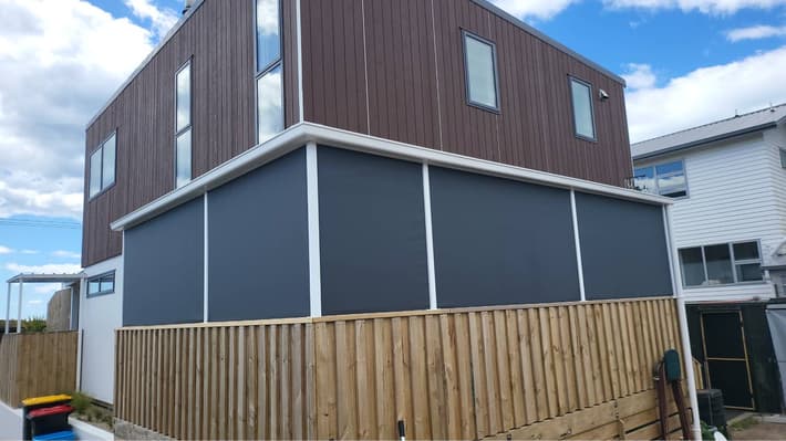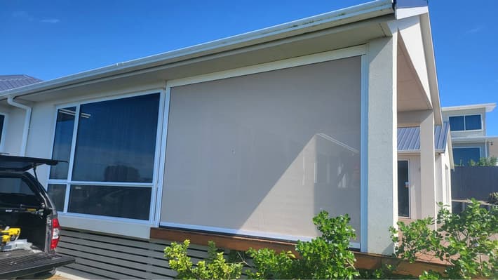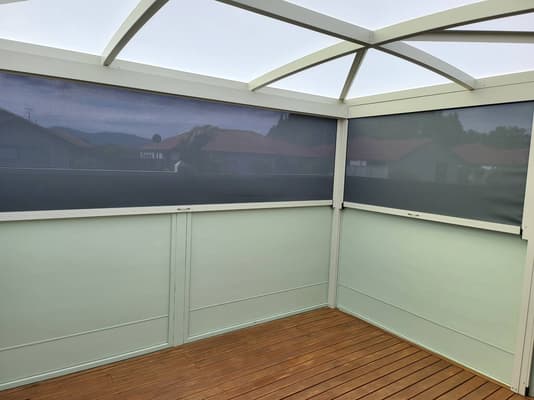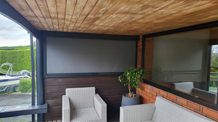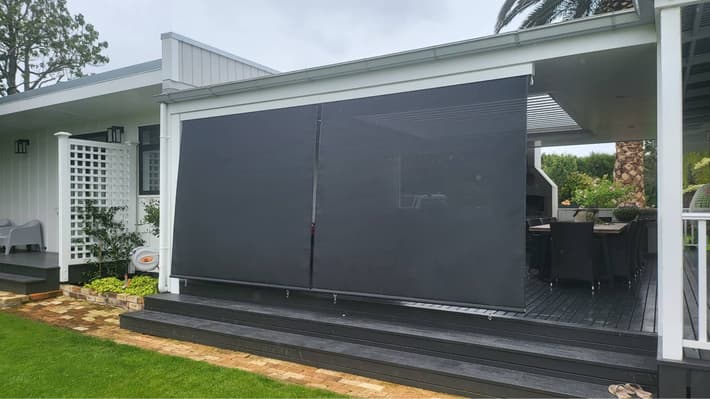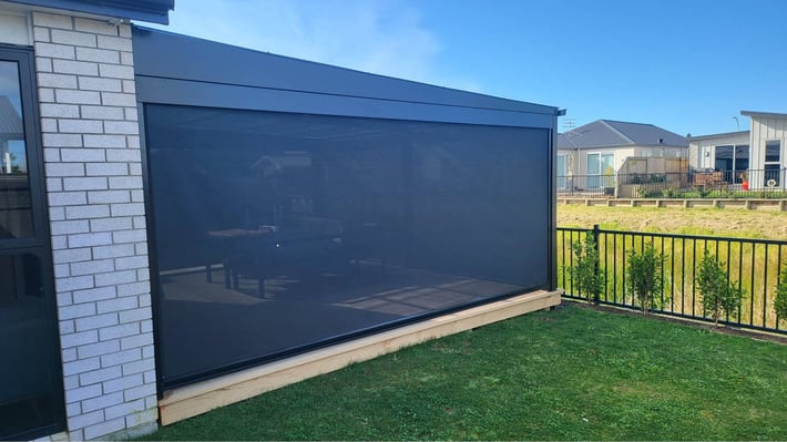 Our zipscreen system blinds are very effective at keeping out rain, however they are not necessarily 100% watertight. This is often because the patio or deck areas against which they sit are not always level which allows for gaps underneath for water to come in. You may also find that mesh screens let in more water than solid PVC blinds. For this reason, you might consider a mix of materials with PVC on the side of the space more likely to be rained on and mesh on the other side. However, with the track system and weather-proofing on the bottom, your blinds will keep out the majority of the rain. We recommend that in very stormy conditions you fully raise the blinds to avoid damage.